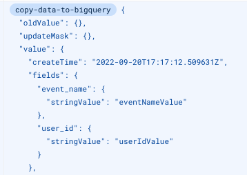 While it might seem silly to have the raw JSON data from the Firestore event in a data column in BigQuery, it has added benefit of not requiring future updates when consuming data. Lee Doolan’s medium post covers the pros and cons of using topic schemas, so check that out if you want to learn more.